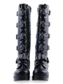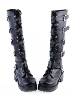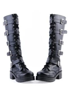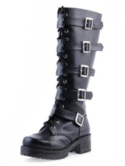 Rugged boots have a certain attraction about them that boots of other styles cannot duplicate. They are ragged, rough but quite popular and fashionable, too. This pair is made from a durable PU material and features a lug sole and heel. The front of the boots have laces from top to bottom. These laces are embellished with fabulous straps and buckles every few inches up the boot. The insides of the boots have a zip closure that make for easy off and on. A fun and funky pair of boots that would be great for a variety of Cosplay genres as well as for your regular wardrobe.