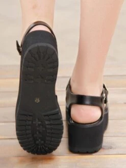 Lolitashow Gothic Black Lolita Platofrm Sandals White Cross Print Ankle Strap Buckle