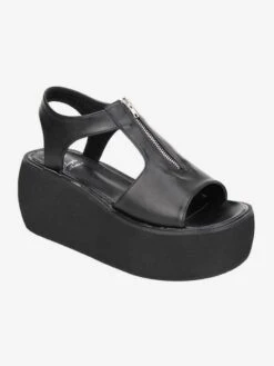 Lolitashow Gothic Matte Black Lolita Sandals Platform Zipper Designed