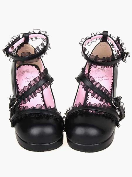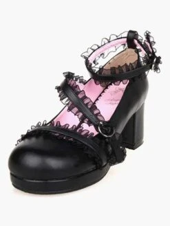 Be the first to review “Lolitashow Matte Black Lolita Chunky Heels Shoes Lace Trim Ankle Straps Buckles” Cancel reply