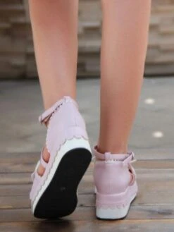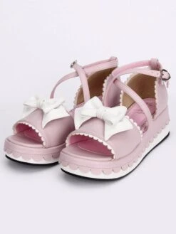 Be the first to review “Lolitashow Pink Lolita Platform Sandals White Bows Ankle Straps Heart Shape Buckle” Cancel reply