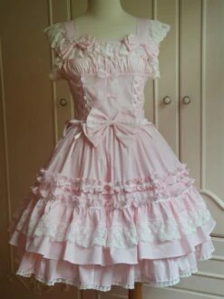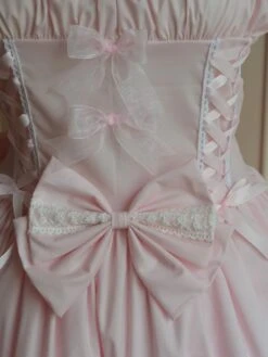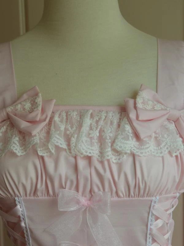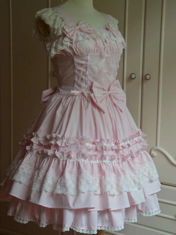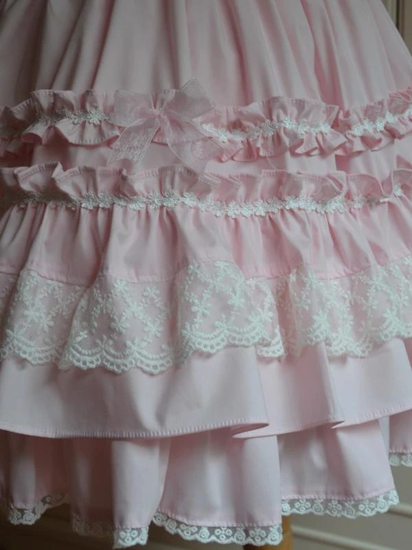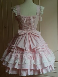 Lolitashow Sweet Light Pink Cotton Lolita Jumper Skirt Lace Trim Lace Up Ruffles