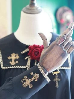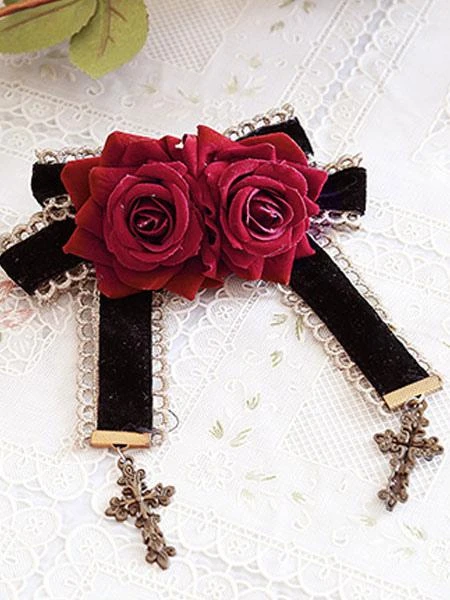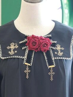 Lolitashow Sweet Lolita Brooches Rose Flower Bows Cross Pendant Stylish Lolita Accessories