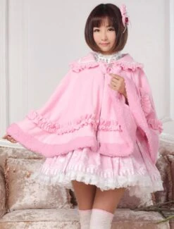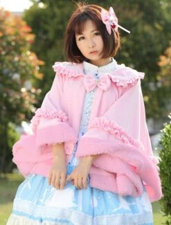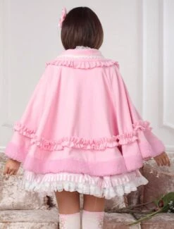 Lolitashow Sweet Lolita Clothing Pink Bow Ruffled Milanoo Lolita Cloak With Peter Pan Collar
