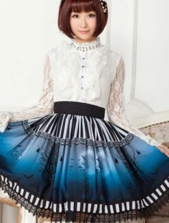 Lolitashow Sweet Lolita Skirt The Bat Under The Blue And White Moon Night SK Lolita Skirt