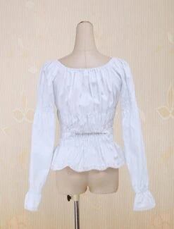 White lolita blouse,features its long sleeves puff design,bow decorated,made of cotton.