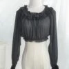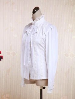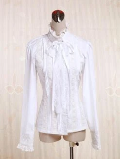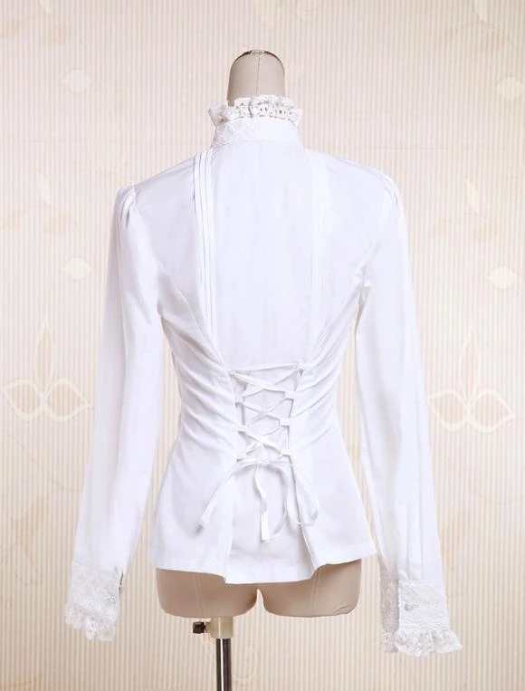 White lolita blouse,ruffles decorated on the cuff and collar,front bottons.
