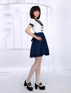 Lolitashow White Navy Blue Lolita One-piece Dress Sailor Style Short Sleevs