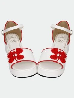 Lolitashow White Qi Lolita Sandals Platform Red Chinese Style Buttons