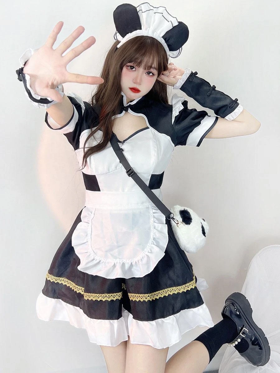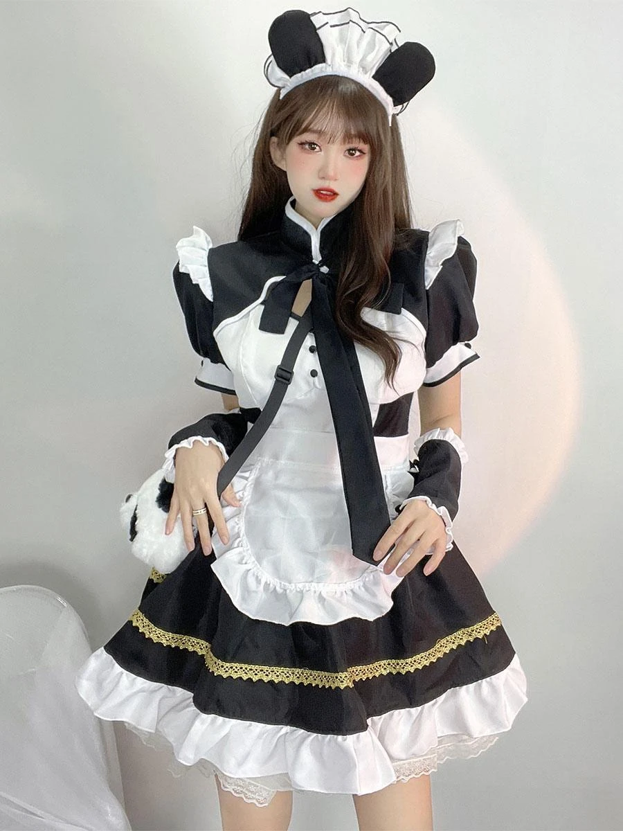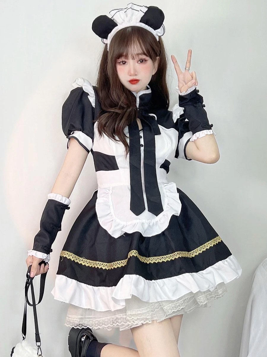 Maid Lolita Dress Polyester Short Sleeves Whit Ruffles Lolita Dress