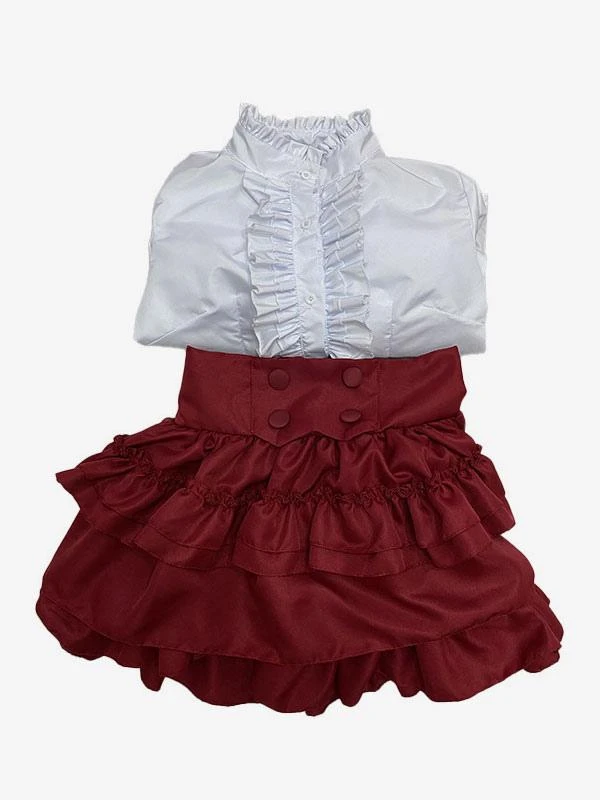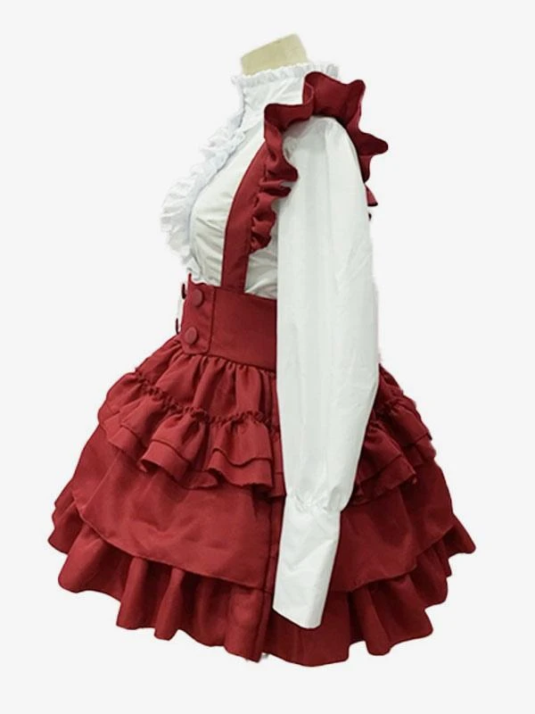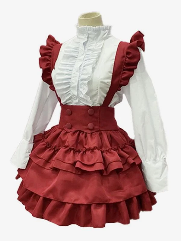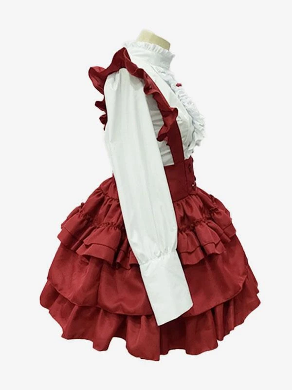 Maid Lolita Dresses Ruffles Red Long Sleeves Lolita Dress