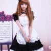 Maid Lolita Outfits Black Puff Sleeve Peter Pan Collar Bows Ruffles OP One Piece Dress With Pleated Apron And Headpieces
