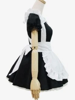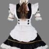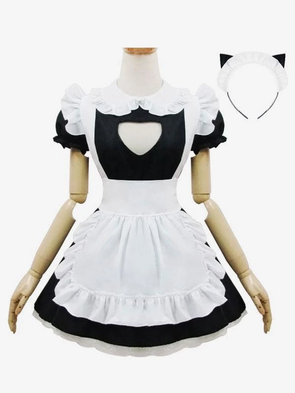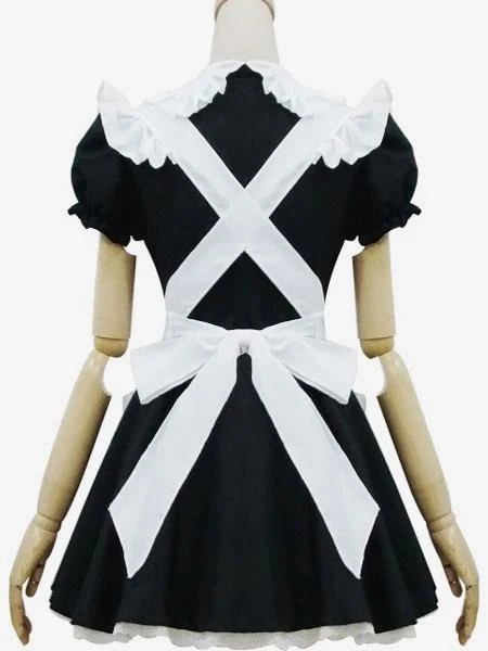 Maid Lolita Outfits Black Puff Sleeve Peter Pan Collar Two Tone OP One Piece Dress With Ruffles Apron And Headpieces