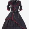 Military Style Gothic Lolita OP Dress Side Draping Short Sleeve White Lolita One Piece Dress