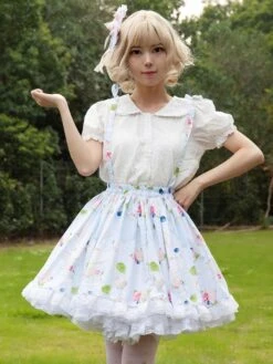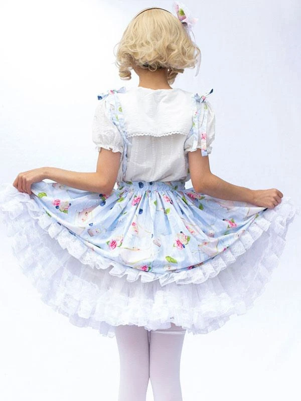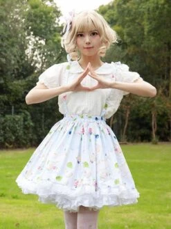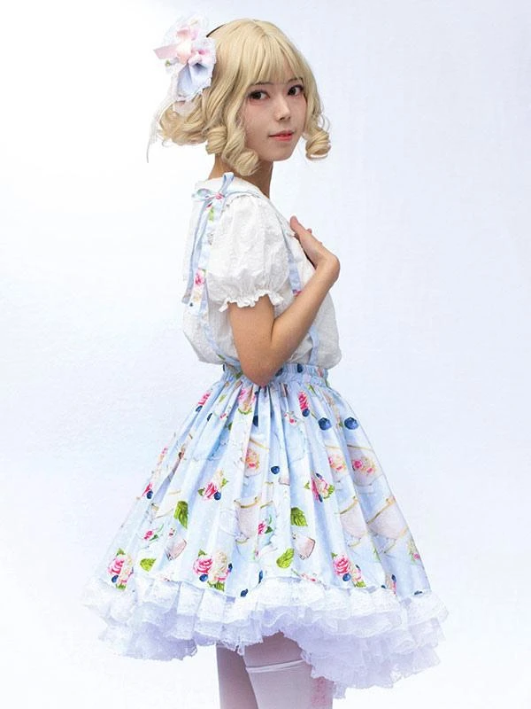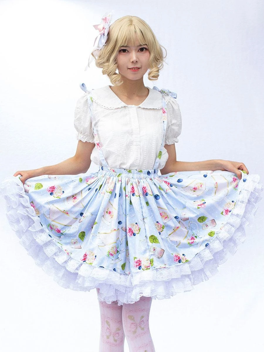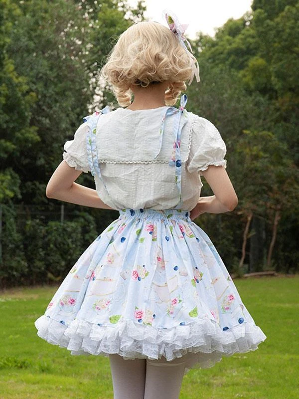 Pastoral Style Lolita SK Cardcaptor Sakura Ruffles As Image Floral Print Lolita Skirts