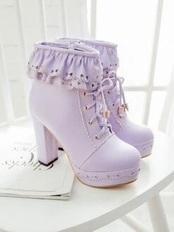 Be the first to review “Pink Lolita Boots PU Leather Round Toe Chunky Heel Low Tops Lolita Footwear” Cancel reply