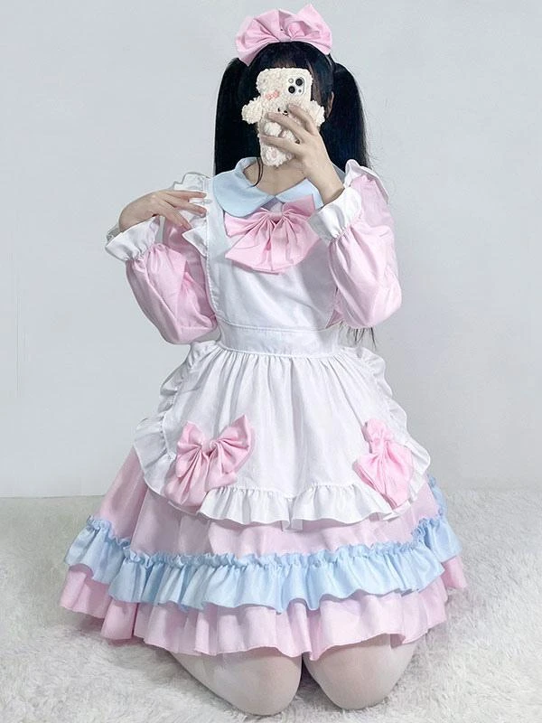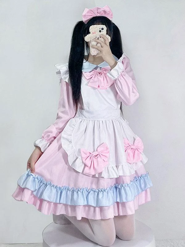 Pink Maid Dress Polyester Bow Long Sleeves Lolita Dress
