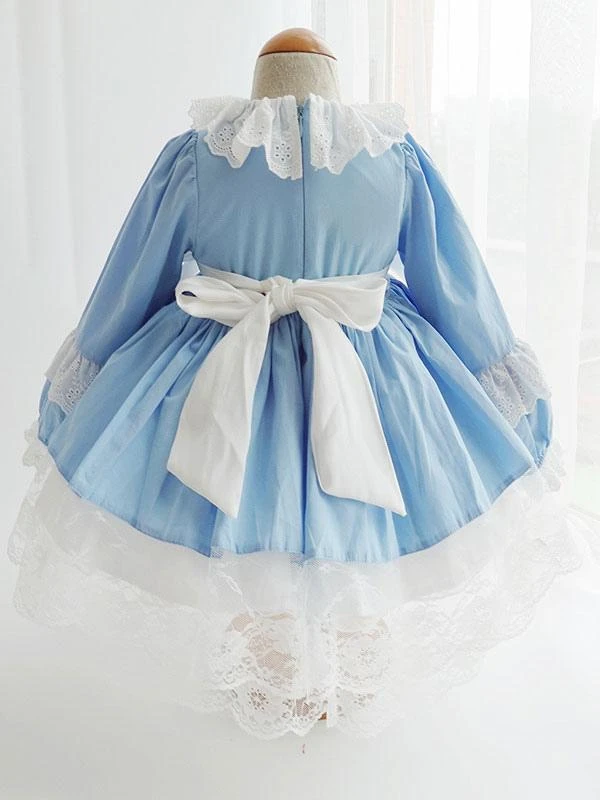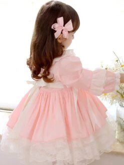 Polyester Daily Casual Lace Long Sleeves Polyester Spring Dress ROCOCO Style Pink Kids’ Lolita Dresses