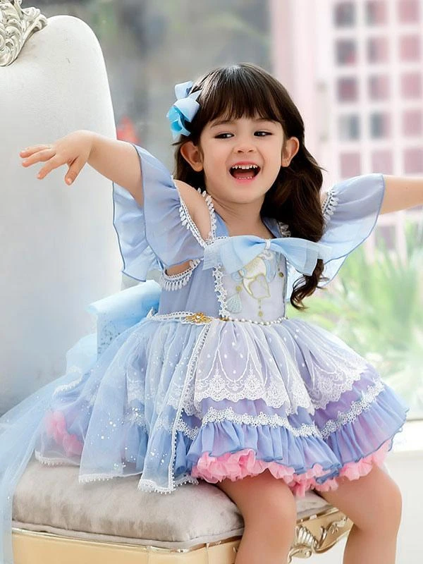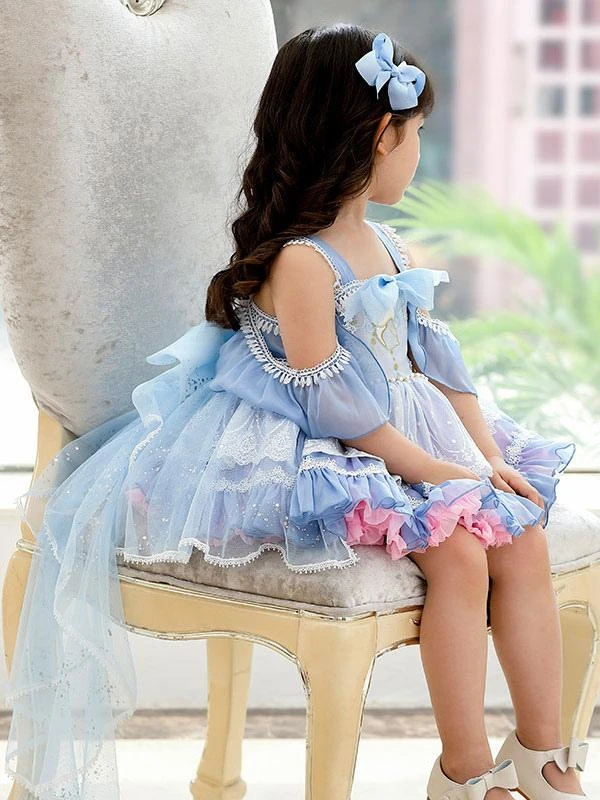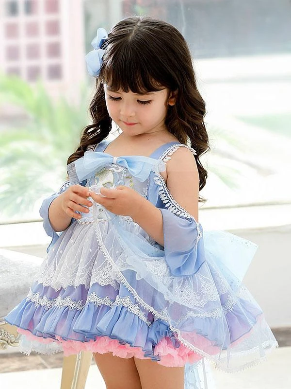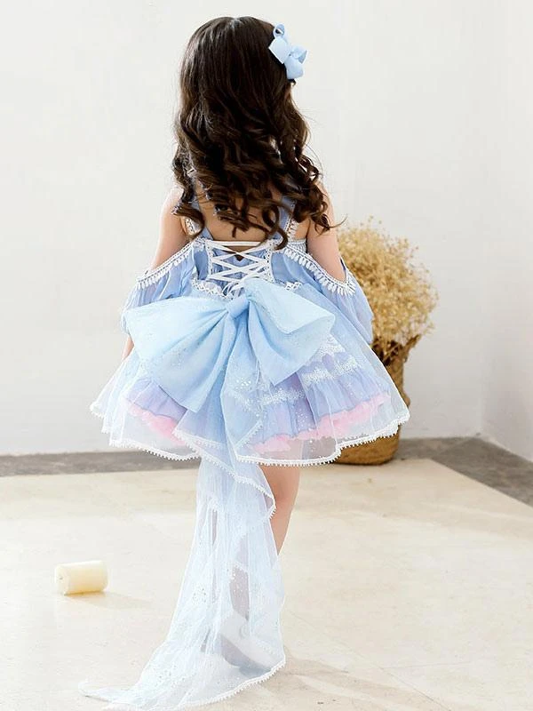 Polyester Tea Party Lace Short Sleeves Polyester Spring Dress ROCOCO Style Light Sky Blue Kids’ Lolita Dresses