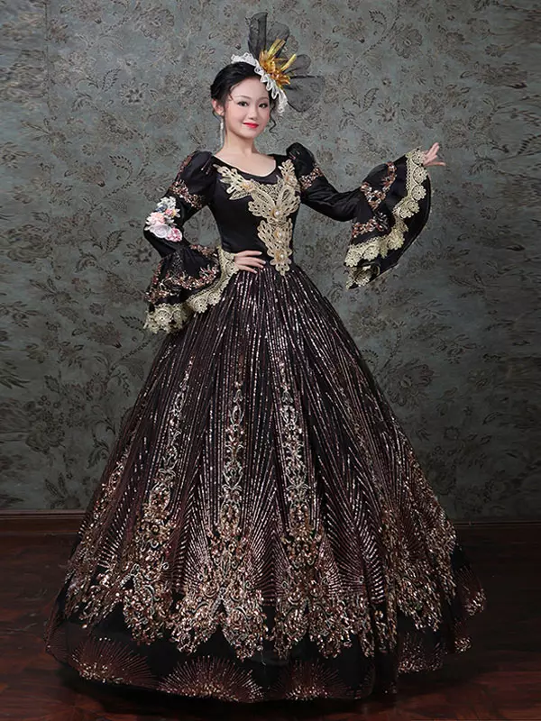 Prom Dress 2024 Rococo Long Sleeve 4 Colors Classic Victorian Dress With Headwear