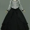 Prom Dress Victorian Dress Costume Blue Satin Ruffle Long Sleeves High Collar For Women’s Victorian Era Clothing Corest Retro Outfits Halloween