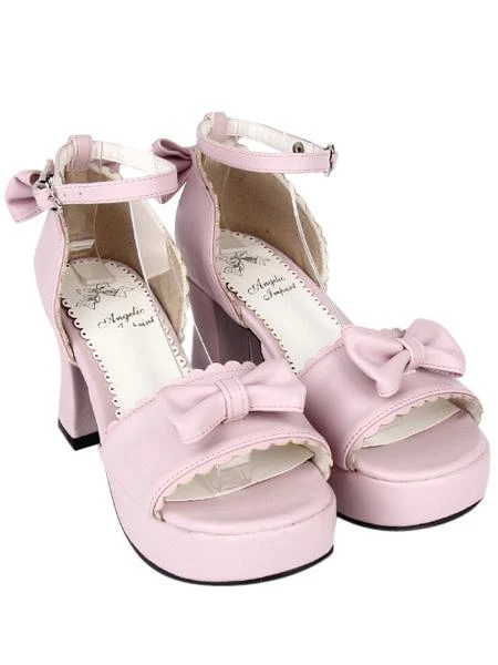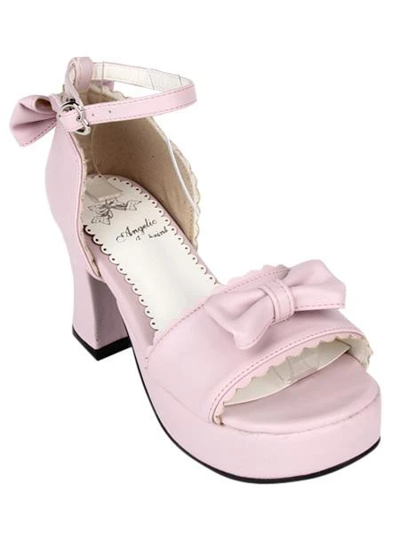 PU Leather Pink Open Toe Mid Heel Round Toe Lolita Sandals