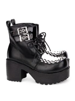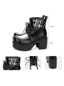 Be the first to review “Punk Lolita Boots Metallic Buckle Lace Up PU Platform Checkered Black Lolita Booties” Cancel reply