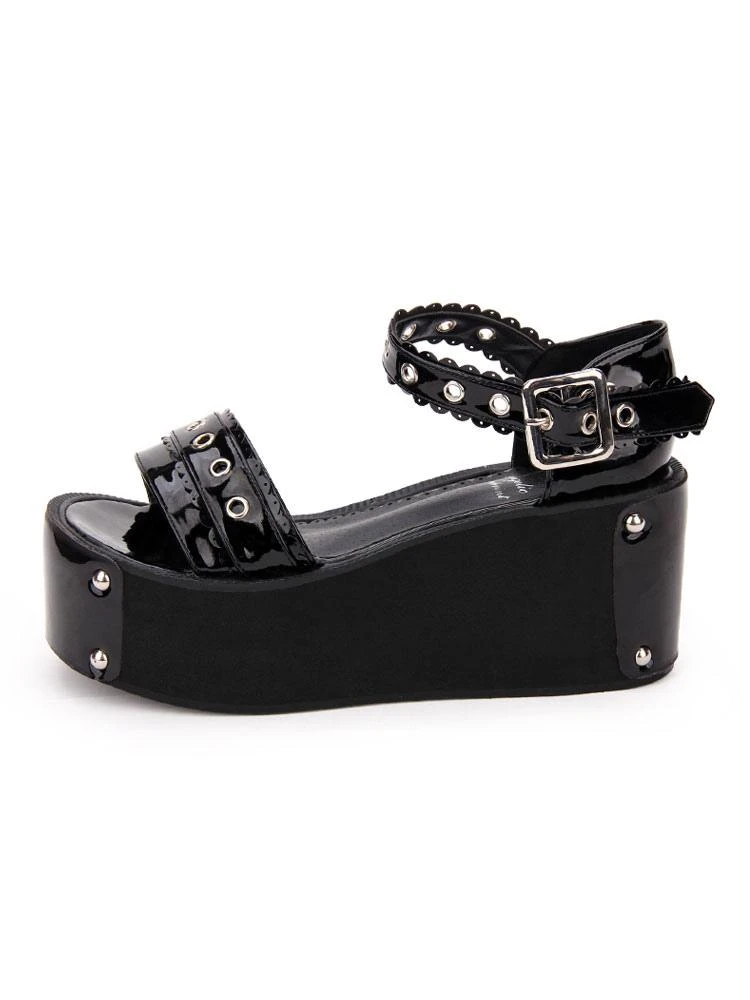 Punk Lolita Sandals Grommet Metallic Buckle Rivet Black Lolita Flatform Shoes