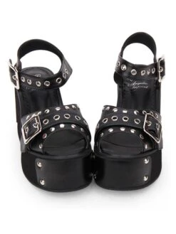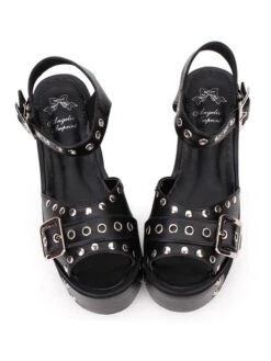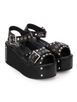 Punk Lolita Sandals Metallic Rivet Grommet Platform Wedge Heel Black Lolita Shoes