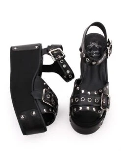 Be the first to review “Punk Lolita Sandals Metallic Rivet Grommet Platform Wedge Heel Black Lolita Shoes” Cancel reply