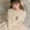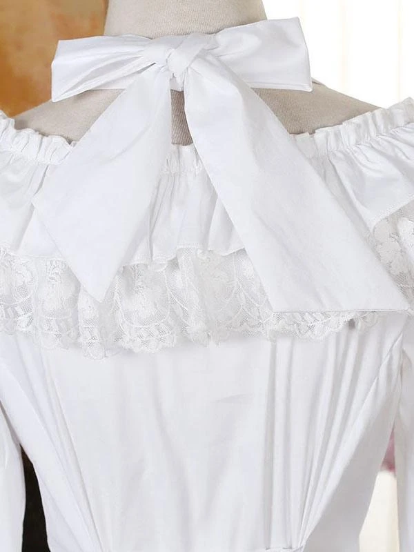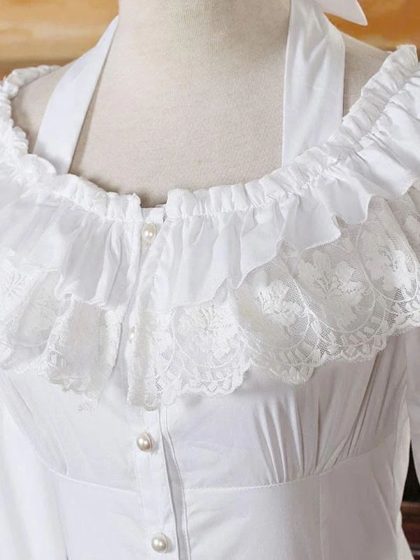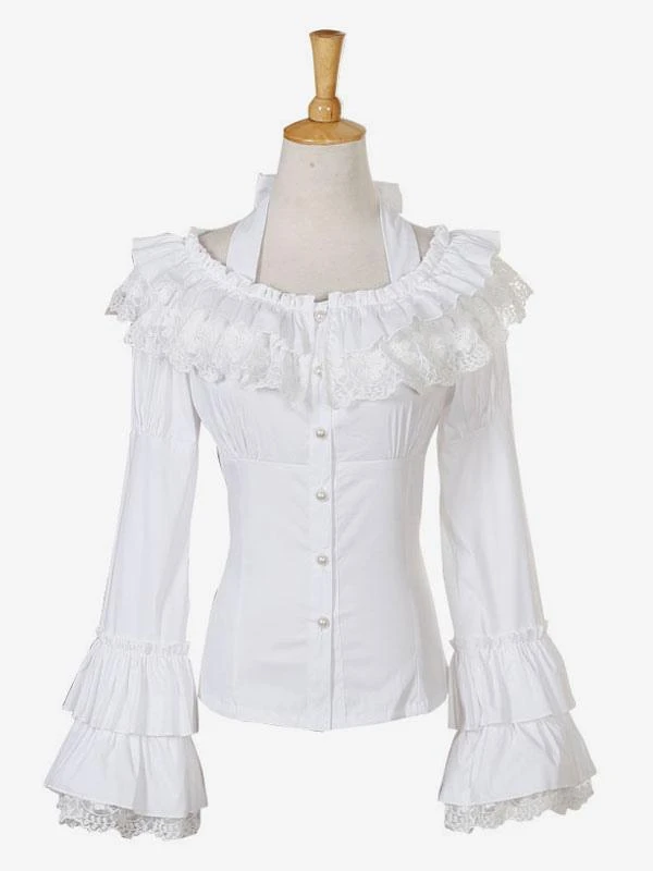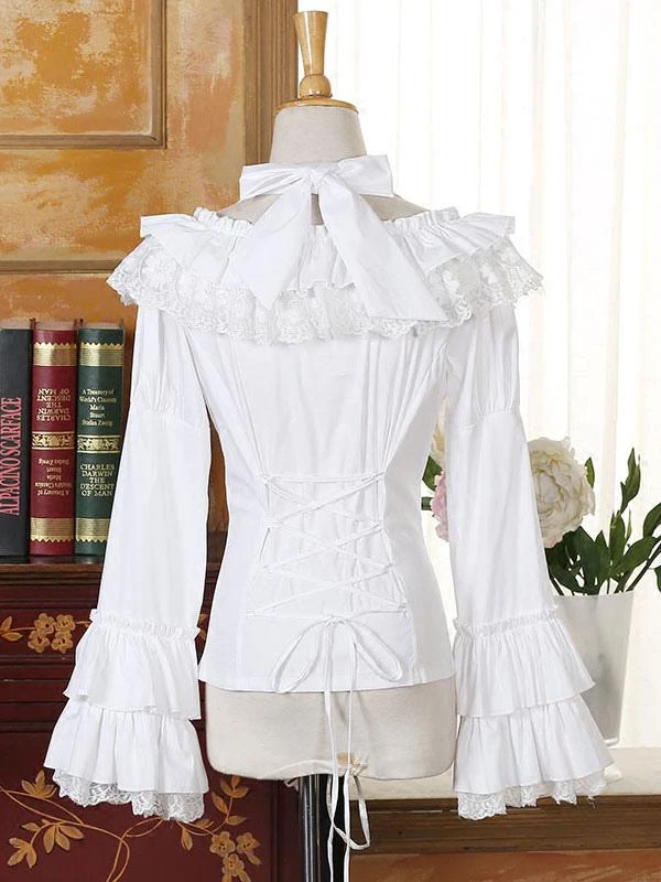 Rococo Lolita Blouse Chiffon Bell Sleeve Lace Ruffles Frills Scoop Neck White Lolita Top