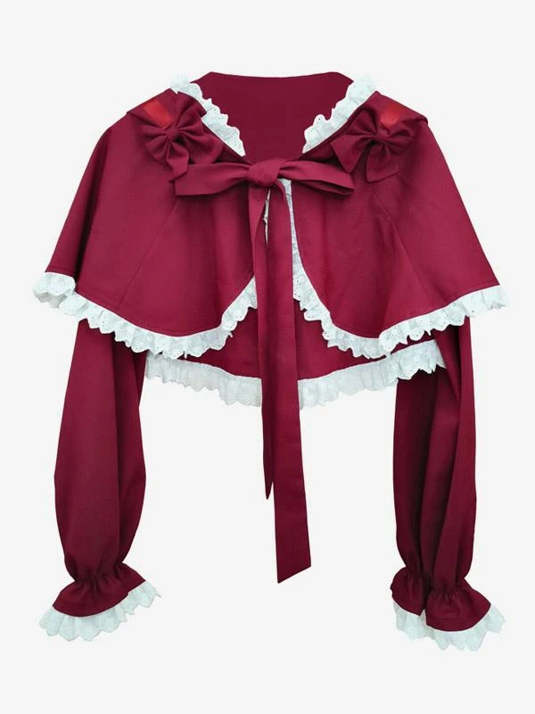 ROCOCO Style Lolita Poncho Red Polyester Lace Bows Winter Lolita Outwears