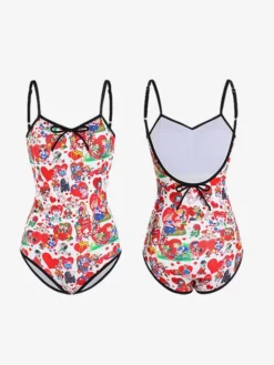 ROCOCO Style Lolita Swimsuits Black Floral Print Bows Sleeveless Jumpsuit