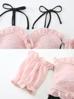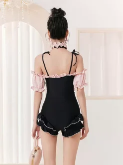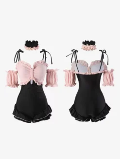 ROCOCO Style Lolita Swimsuits Black Lace Up Ruffles Color Block Sleeveless Jumpsuit