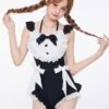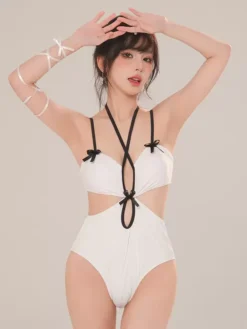 ROCOCO Style Lolita Swimsuits White Bows Lace Up Sleeveless Jumpsuit