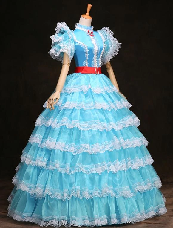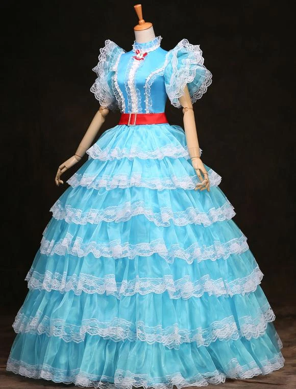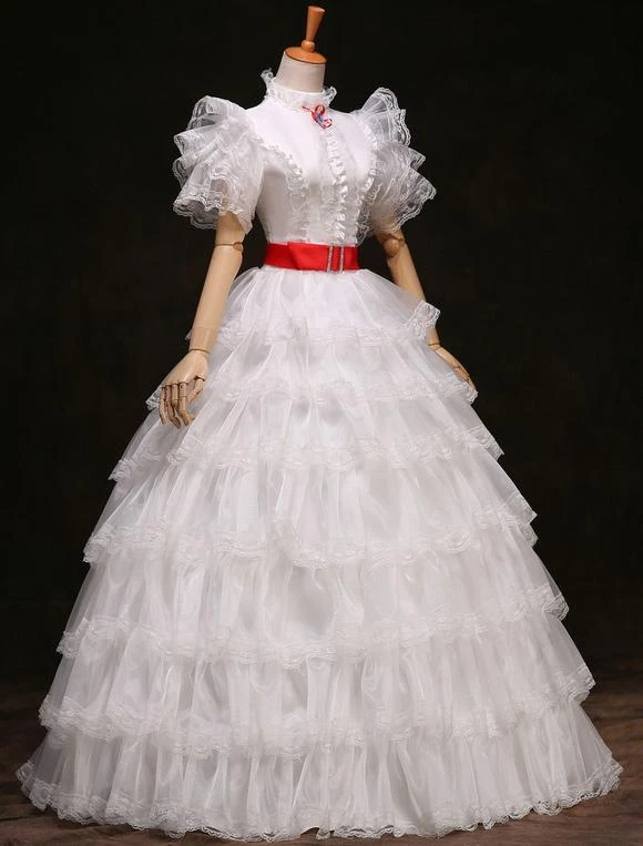 Rococo Tiered Costume White High Neck Princess Retro Classic Costumes Halloween