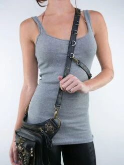 Steampunk Lolita Handbag Black PU Leather Rivets Skeleton Waist Pack Gothic Lolita Accessories
