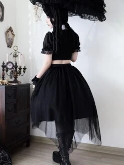 Steampunk Lolita Outfits Black Lace Ruffles Short Sleeves Skirt Top