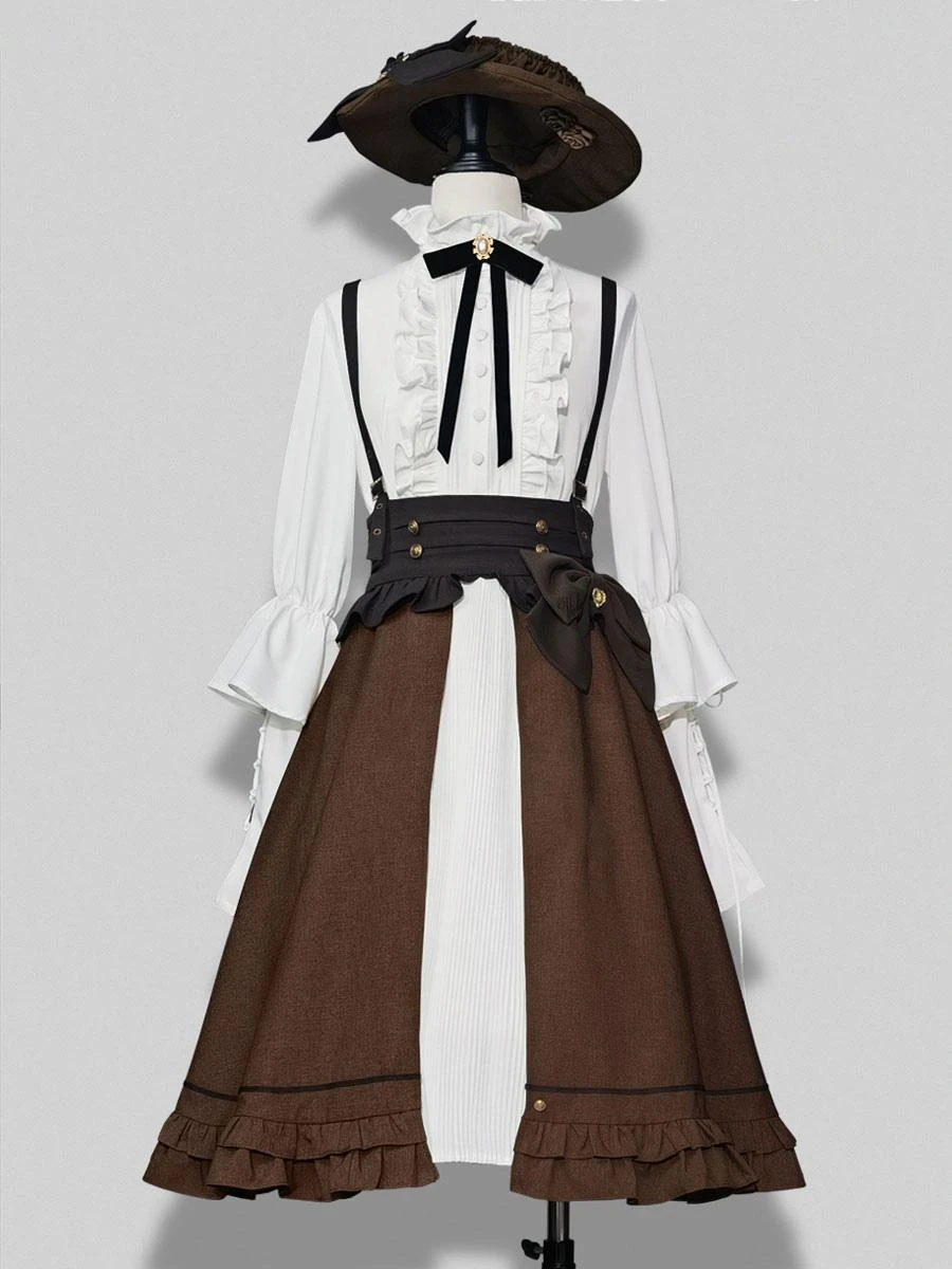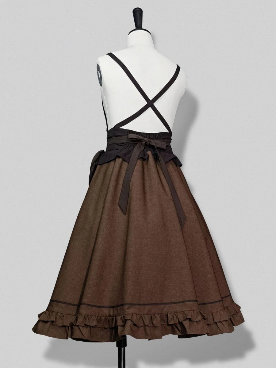 Steampunk Ouji Lolita SK Coffee Brown Ruffles Lolita Skirts