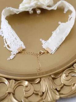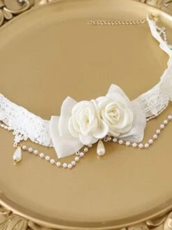 Sweet Lolita Accessories Ecru White Pearls Rose Choker Miscellaneous