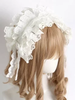 Sweet Lolita Accessories Ecru White Ruffles Bows Lace Polyester Headwear Miscellaneous