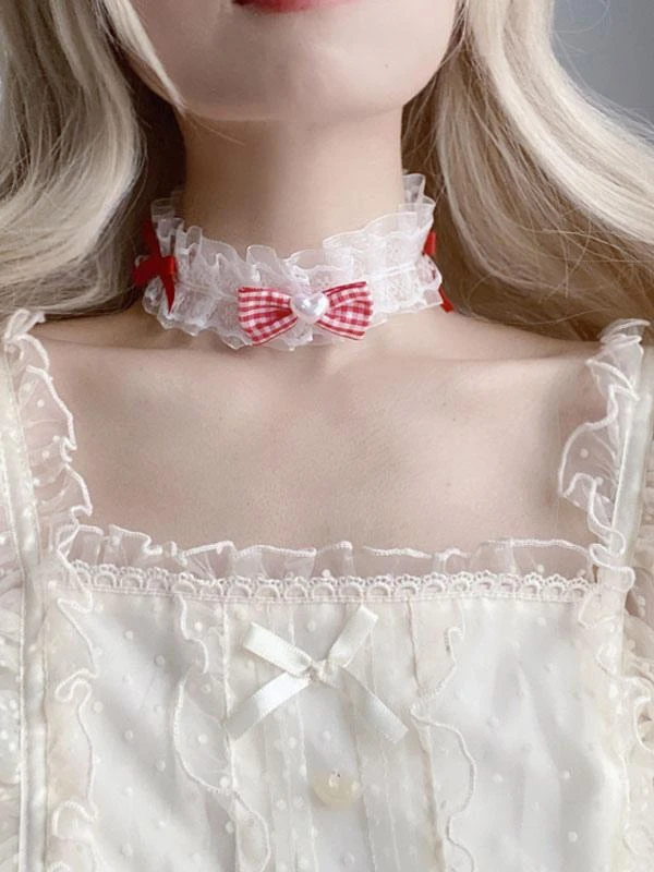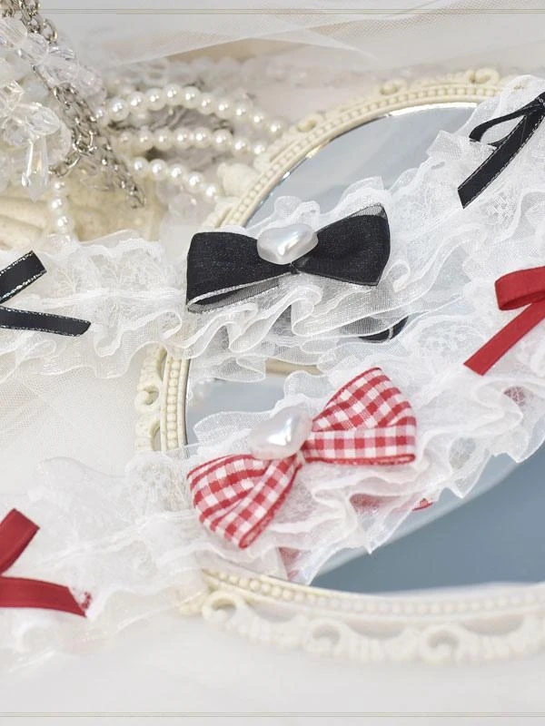 Sweet Lolita Accessories Red Bows Lace Choker Polyester Fiber Miscellaneous