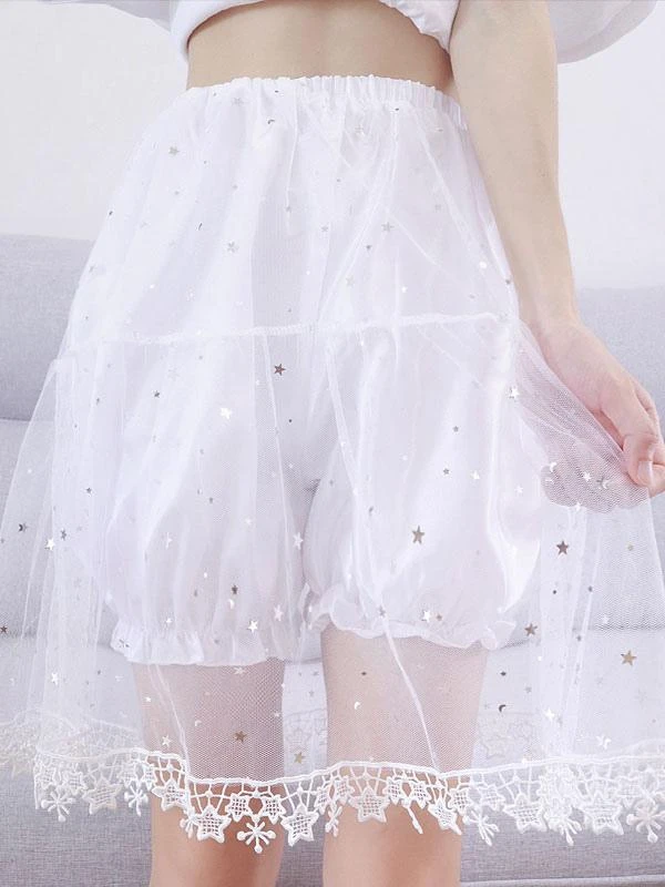 Sweet Lolita Bloomers White Ruffles Sequins Stars Print Lolita Shorts