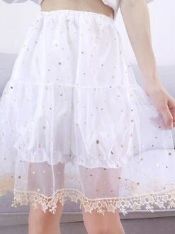 Be the first to review “Sweet Lolita Bloomers White Ruffles Sequins Stars Print Lolita Shorts” Cancel reply