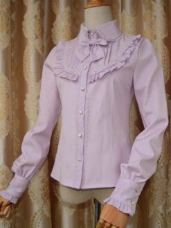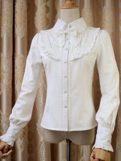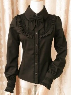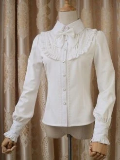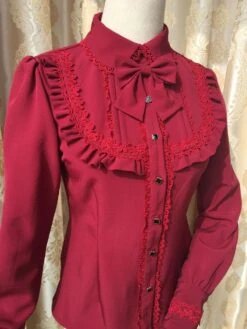 Sweet Lolita Blouse Red Long Sleeve Turndown Collar Bow Ruffled Winter Lolita Shirt