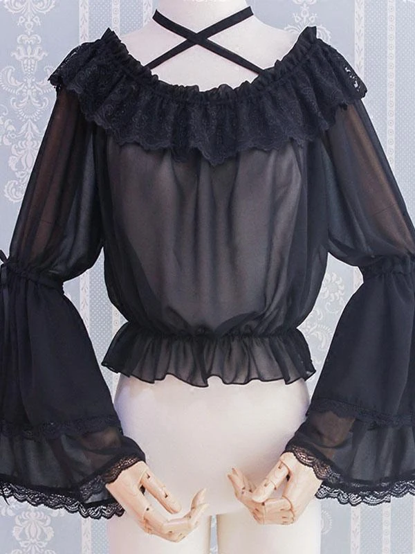 Sweet Lolita Blouses Black Long Sleeves Lolita Top Ruffles Lace Lolita Shirt