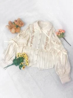 Sweet Lolita Blouses Polyester Lace Up Long Sleeves Casual Top Light Apricot Lolita Shirt