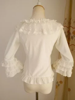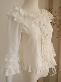 Sweet Lolita Blouses Ruffles Half Sleeves Blouse Lolita Top Ecru White Lolita Shirt