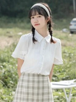 Sweet Lolita Blouses White Short Sleeves Lace Lolita Top Lolita Shirt