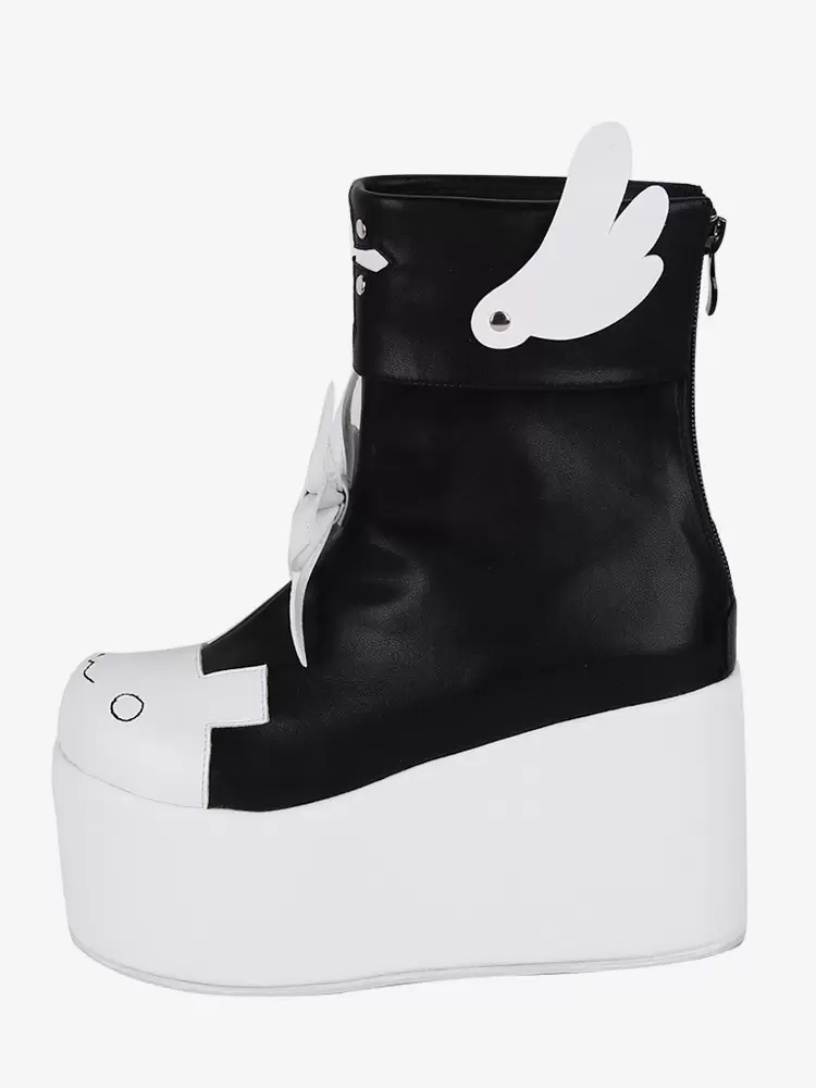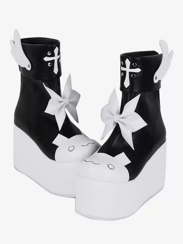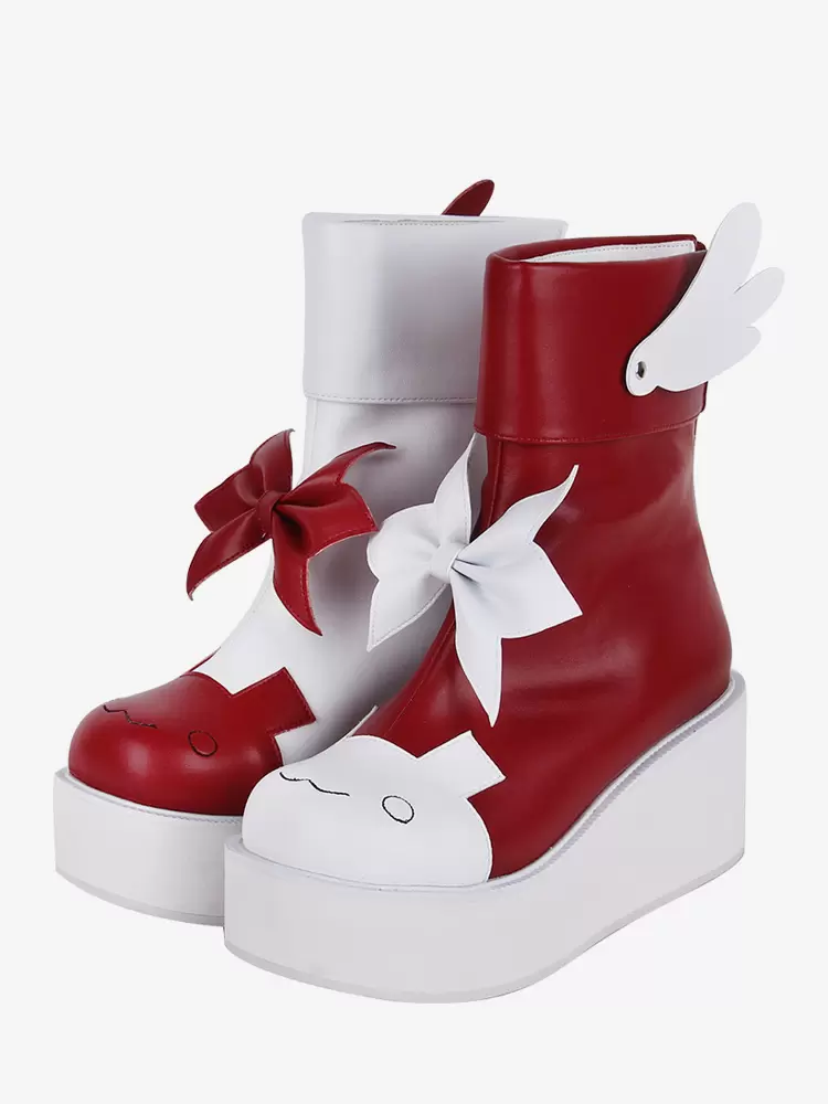 Sweet Lolita Boots Red Butterfly Two-Tone Round Toe PU Leather Lolita Footwear